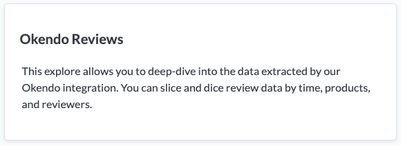 If you have a Growth account, you just need to set up the Okendo integration and trigger a history load. Once you do this, you will see the Okendo Reviews explore in your explore list: