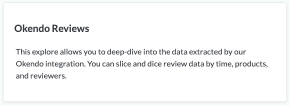 This explore allows you to deep-dive into the data extracted by our Okendo integration. You can slice and dice review data by time, products, and reviewers.