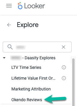 include: "//base_daasity/**/integration/okendo/*"Once enabled, it will be available in the explore menu alongside other Daasity explores: