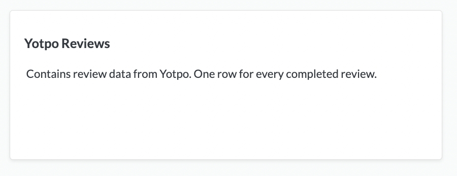 An Explore is created using the Yotpo API data Once you connect Yotpo to Daasity.