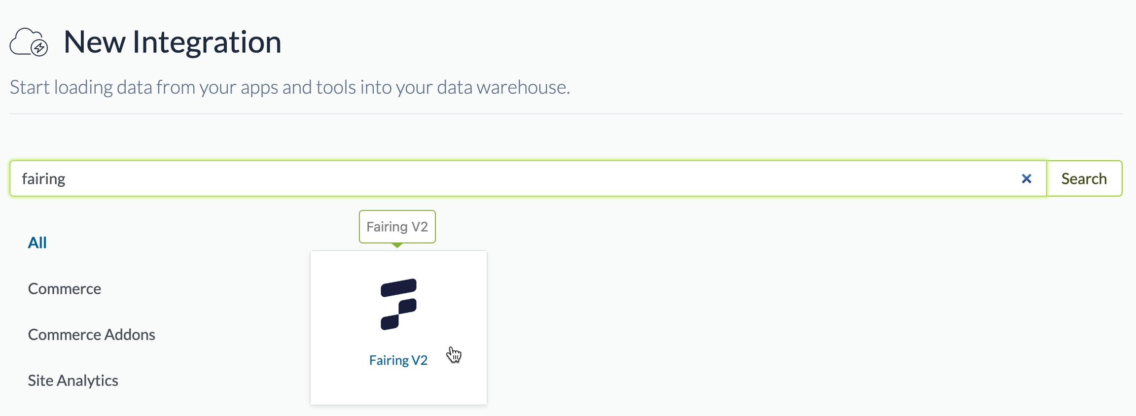 In the search box, type "fairing" and choose the Fairing V2 integration.