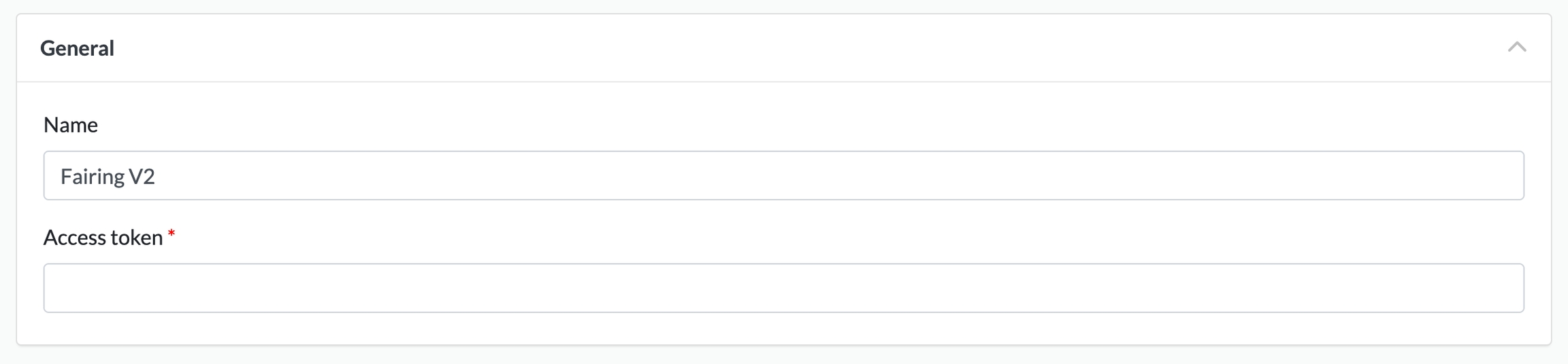 In the Access token field, you should enter your Fairing API Secret Token, which you can find in the Account tab of your Fairing admin screen. View Fairing's documentation here.