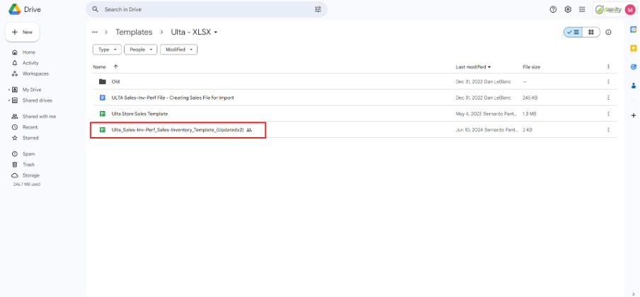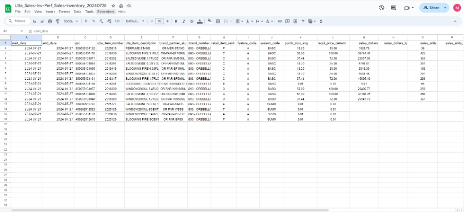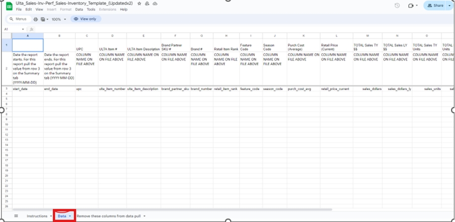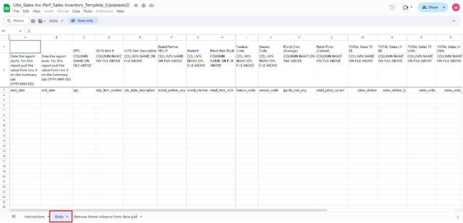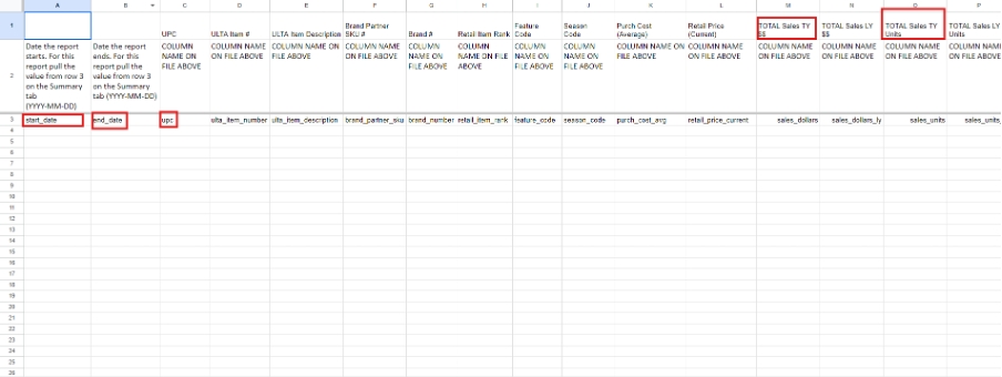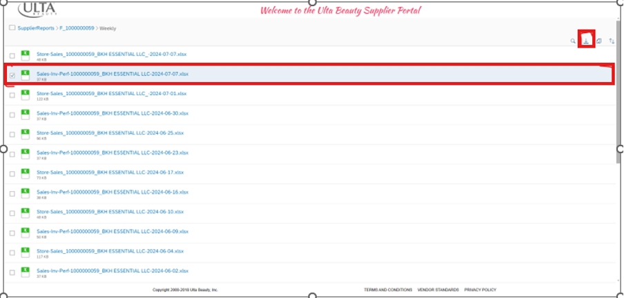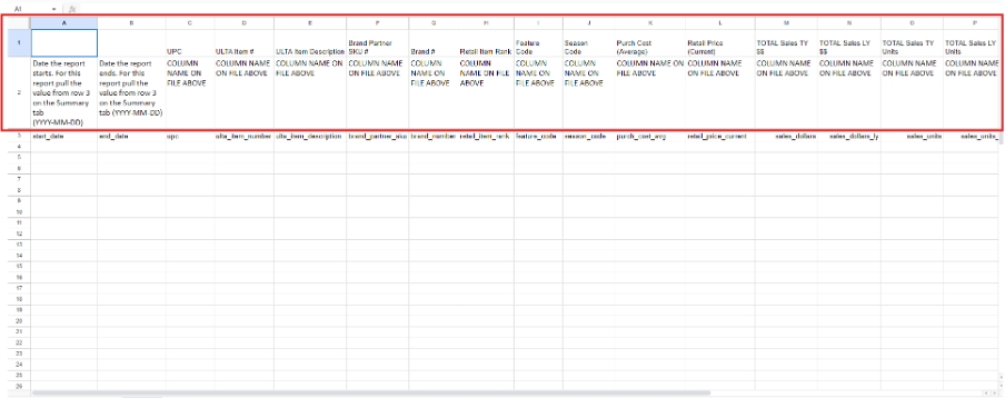 • Under Ulta – XLSX select Ulta_Sales-Inv-Perf_Sales-Inventory_Template_(Updatedx2)