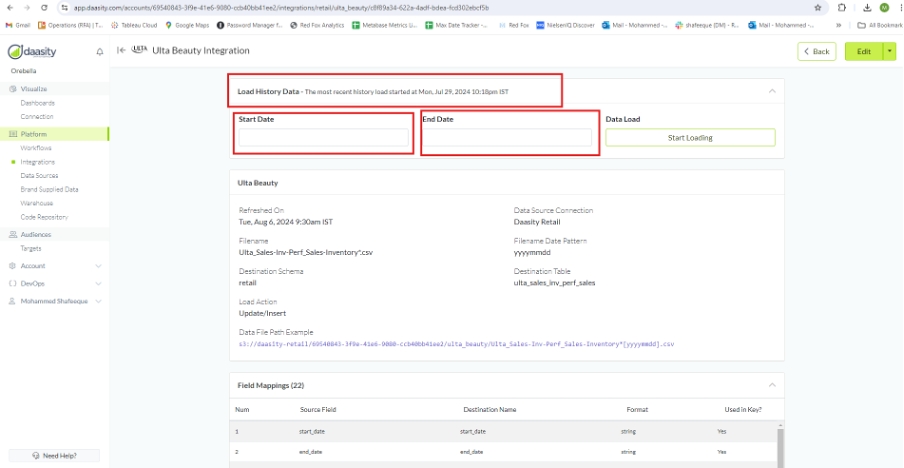 • ⠀Click on Load History Data and Select Start date and End date as per the file saved in dropbox – Then Click StartLoading