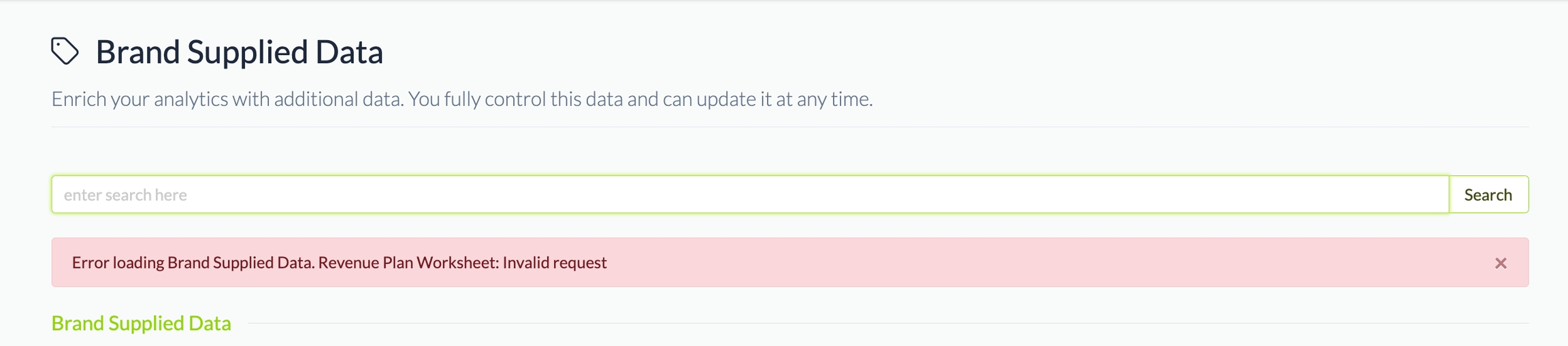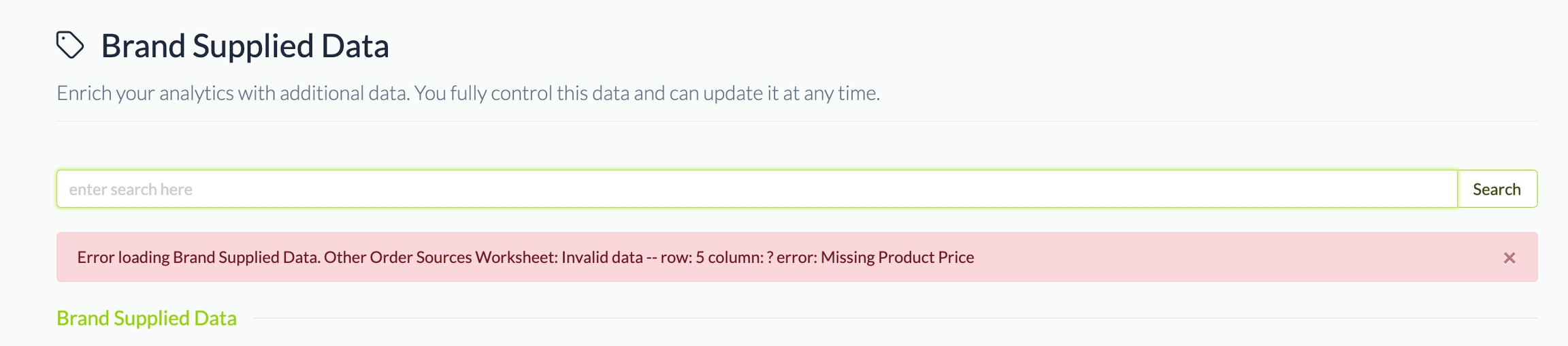 You will be notified of an error and where the error occurred at the top of your Brand Supplied Data page in your Daasity app.