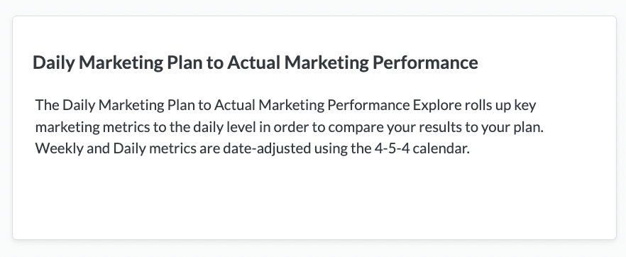 Daily Marketing Plan to Actual Marketing Performance Explore