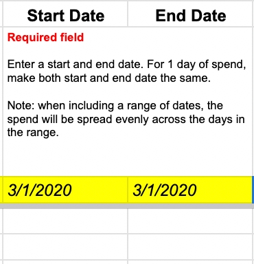 Follow the instructions below for each field. Do NOT add or delete columns. Do Not leave a row incomplete (All required fields must be filled in for a row).