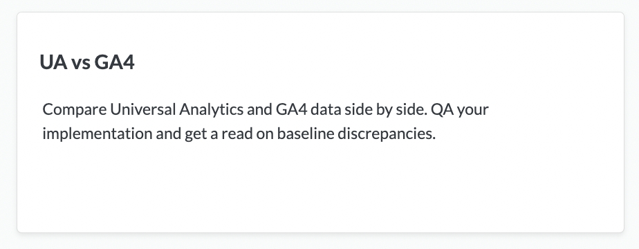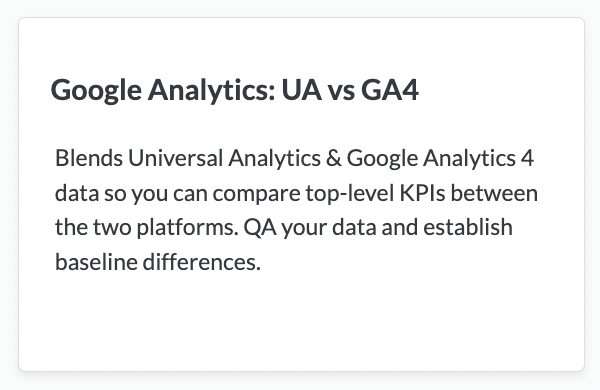 The Google Analytics: UA vs. GA4 Dashboard is a Standard Out-of-Box Daasity Dashboard Built Using the UA vs G4 Explore