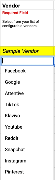 The Marketing Budget tab is used to input your Targeted Marketing Spend, CPA, and ROAS for your Marketing Vendors, to compare against the Actuals in Daasity.