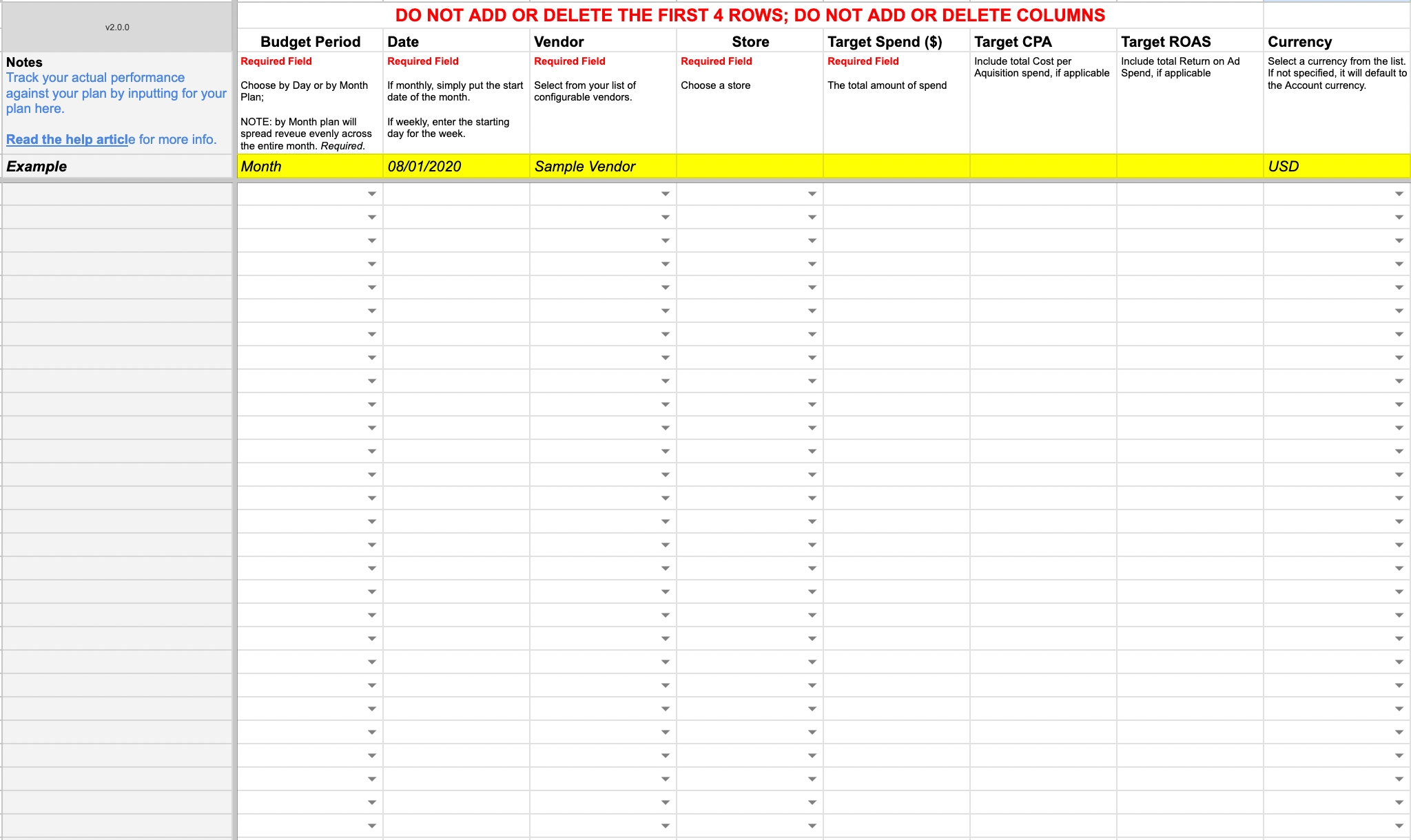 Follow the instructions below for each field. Do NOT add or delete columns. Do Not leave a row incomplete (All required fields must be filled in for a row).