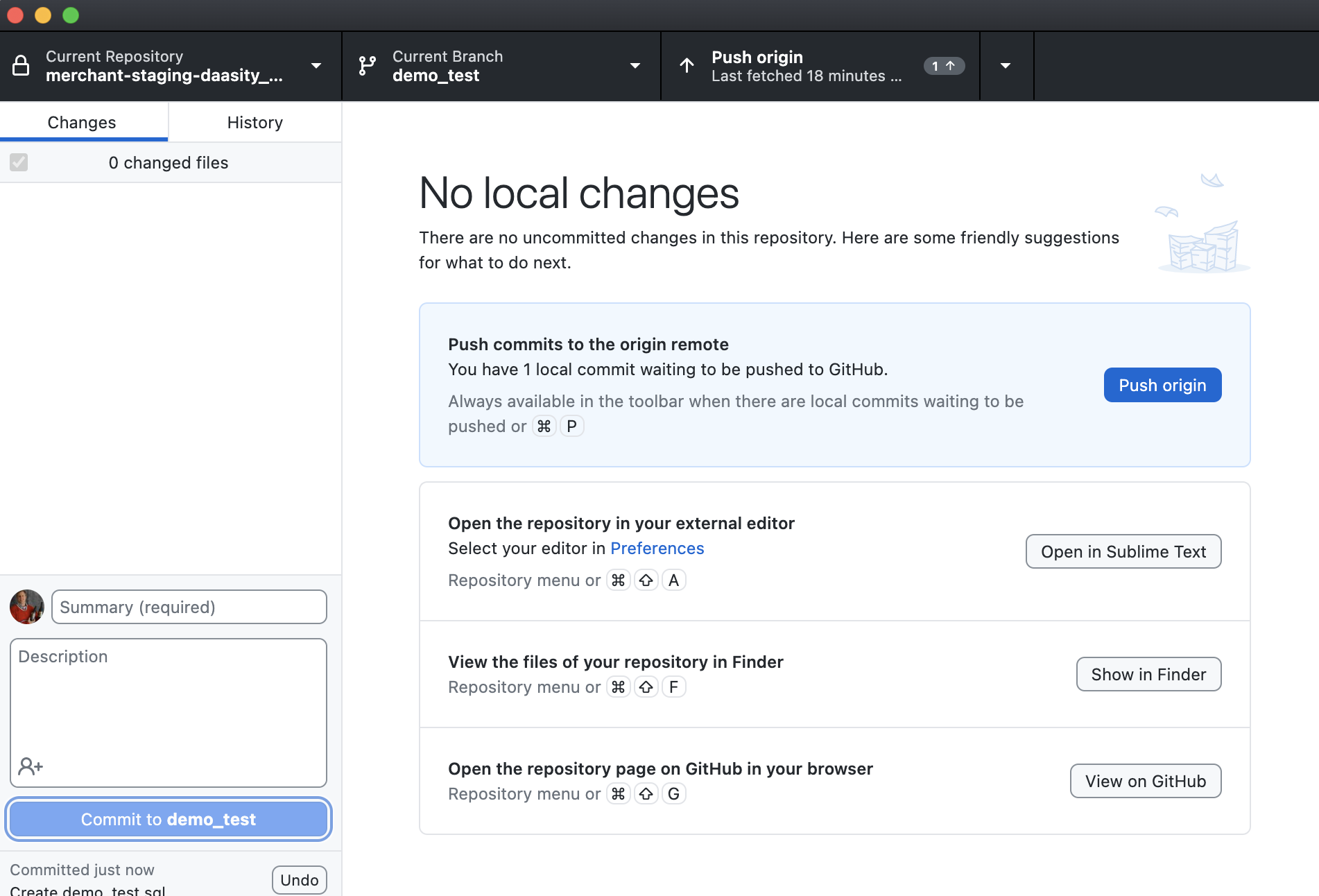 You then need to push the code to Github to make the code available to the Daasity App to execute