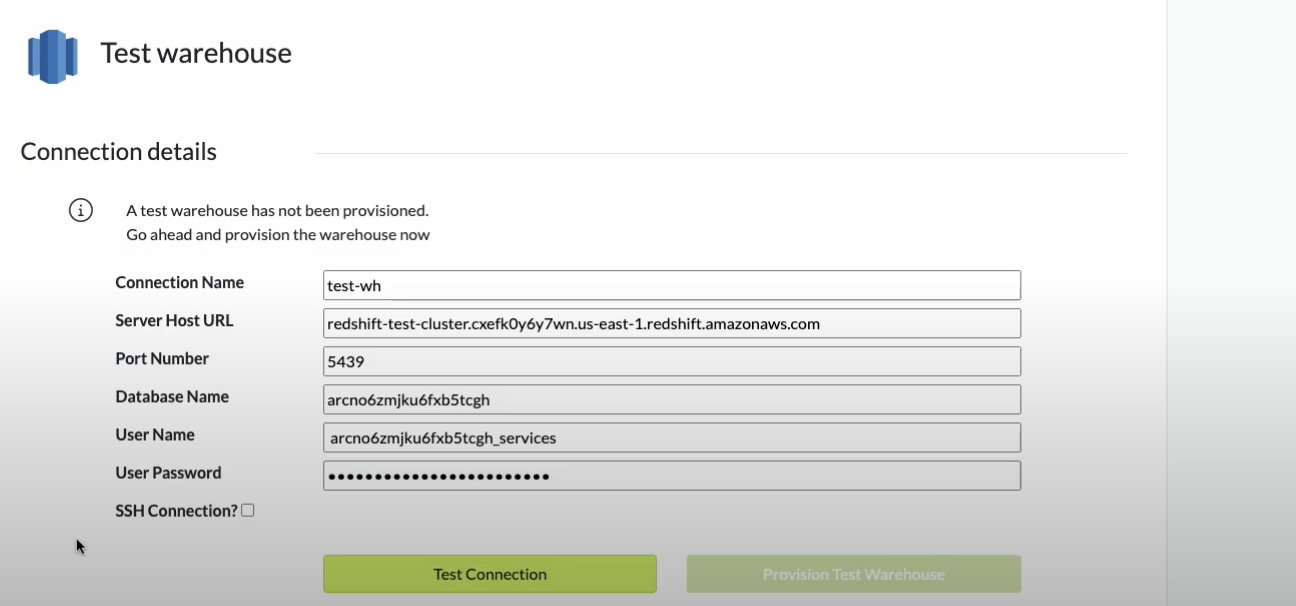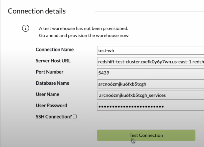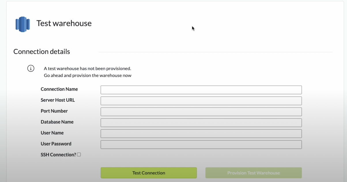Once the test passes click on "Provision Test Warehouse" to complete setup