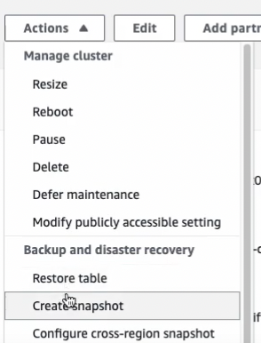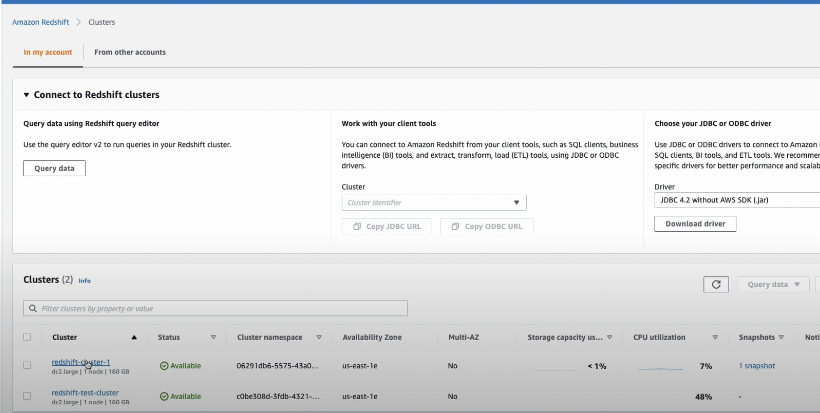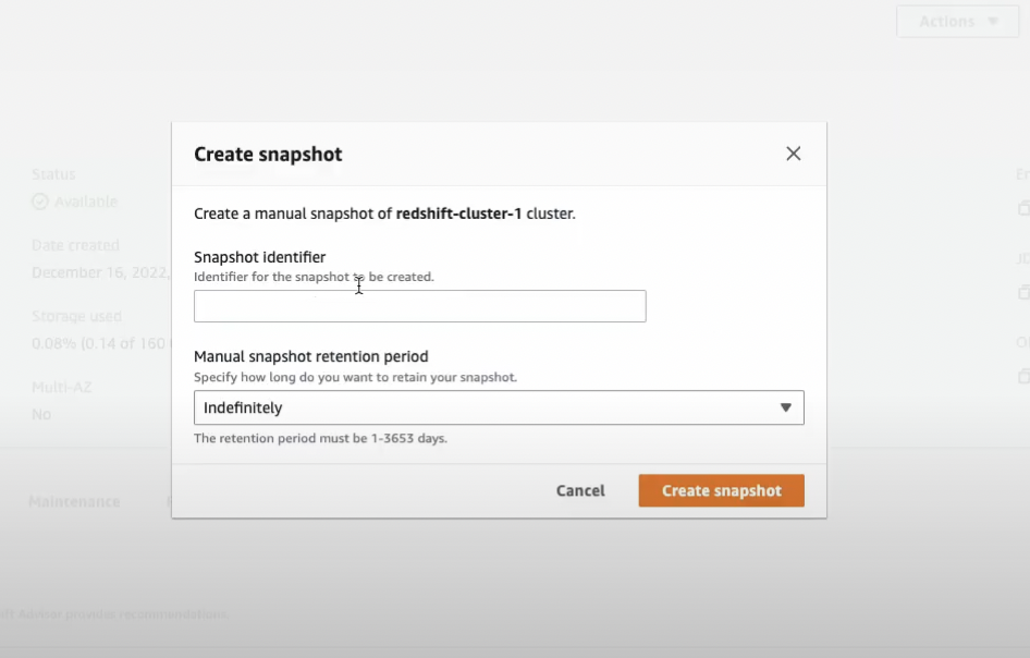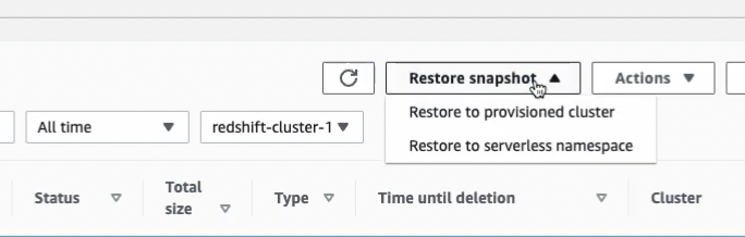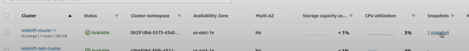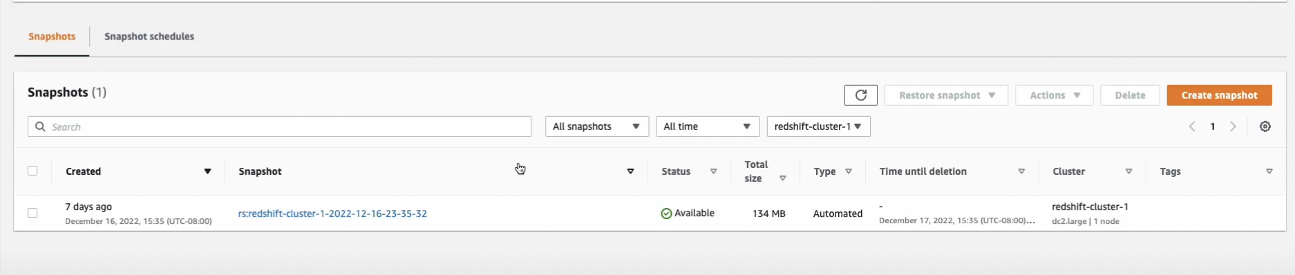 1. [Create a snapshot of your Redshift Cluster](#creating-a-snapshot-in-redshift)