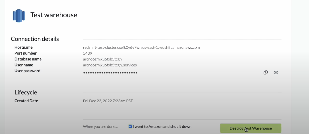 4. [Destroy the Test Warehouse](#destroy-test-warehouse)