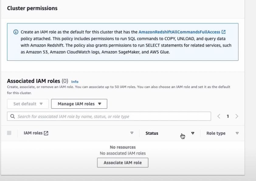 In the "Cluster permissions" make sure to add the correct IAM roles
