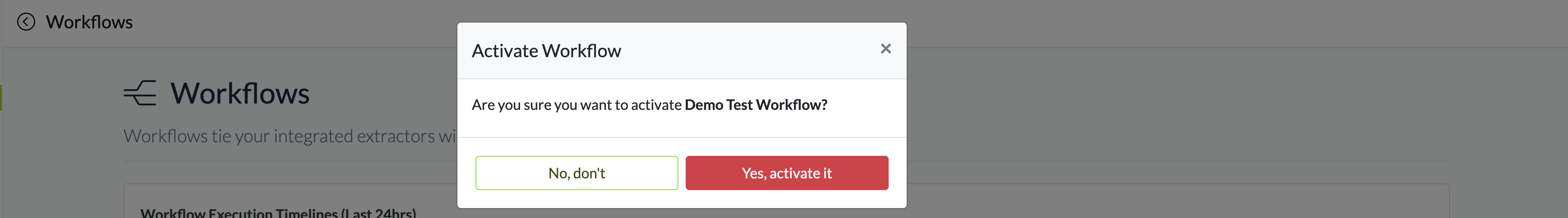 <img src="https://content.gitbook.com/content/amTMWiPne1v1V3L7mbuj/blobs/bfI3YoQCT3itJJrSJG9e/image.png" alt="" data-size="line"> [Activate / Deactivate](#activating-deactivating-a-workflow) - Turn the schedule on or off without deleting the workflow.