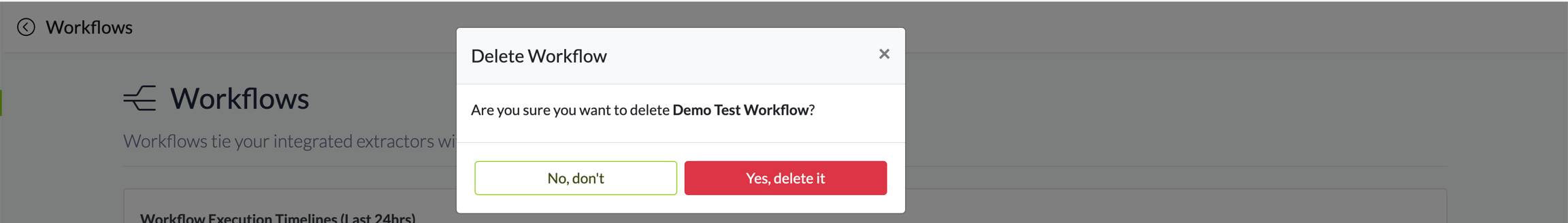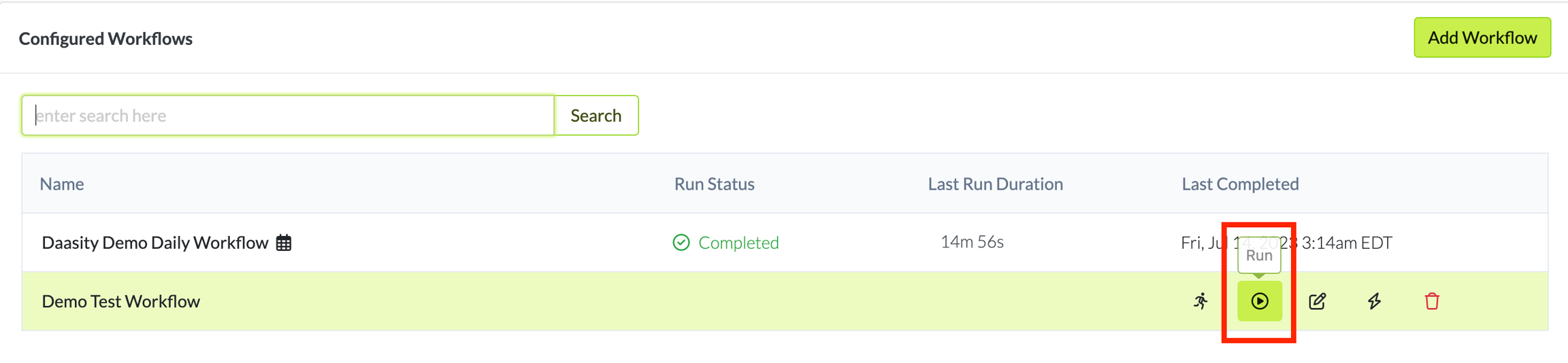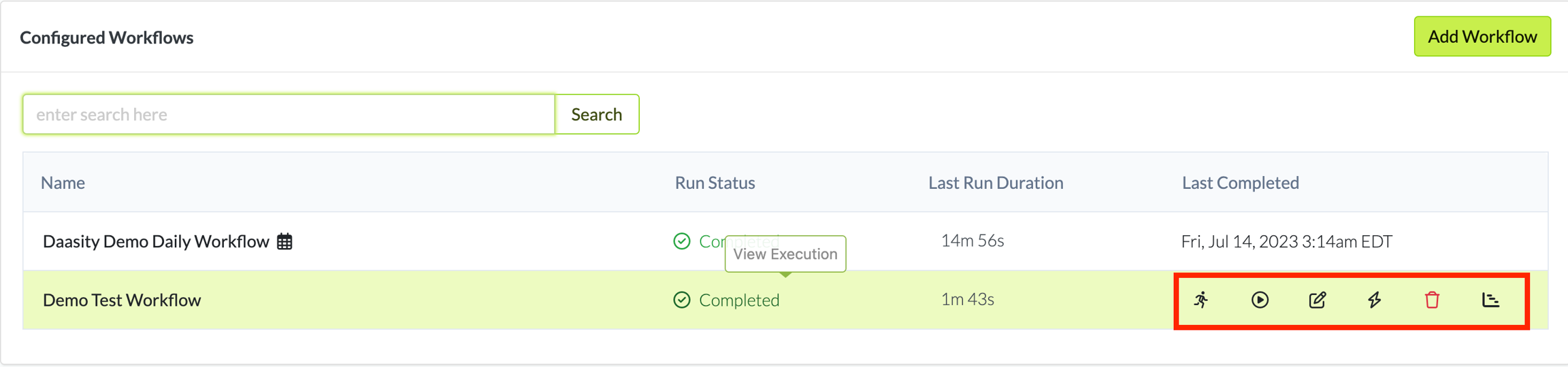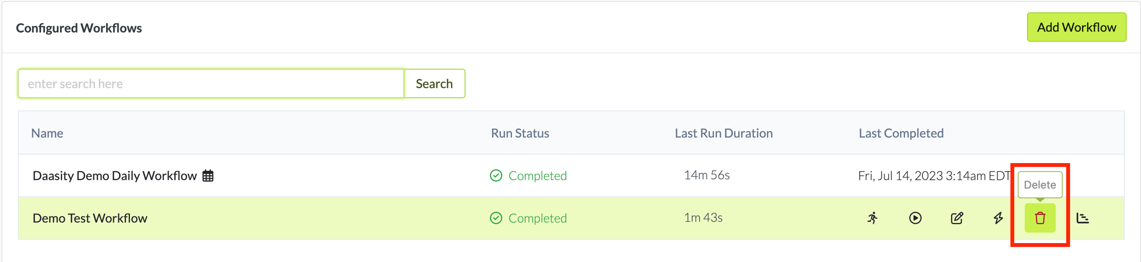 Deleting a workflow is permanent. The Daasity Support team cannot recover a workflow that has been deleted.