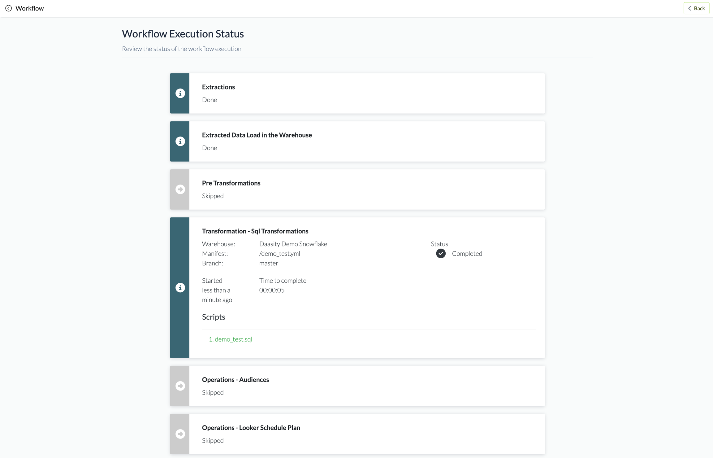 Running a workflow enables you to run on-demand the entire extract, load, transform and operationalize parts of your workflow or to run just certain specific portions