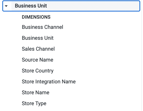 You can filter by Sales Channel (i.e. Shopify and Amazon Seller Central stores by using the Business Unit Dimensions (see below)